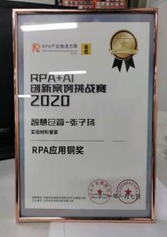RPA大赛金奖证书 RPA大赛铜奖证书