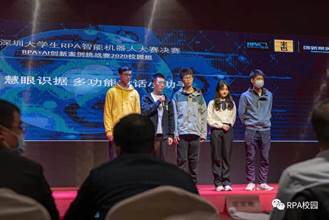 2021年1月4日,深圳大学生RPA智能机器人大赛现场决赛落下帷幕。深圳大学机电与控制工程学院的AutoLeaders创新实践俱乐部(简称:AL俱乐部)组建的两支队伍在比赛中力创佳绩,获得了比赛的金奖和铜奖。同时,在比赛现场,微软(中国)全渠道事业部首席技术顾问管震先生对我院“慧眼识据组”的同学表达了高度的认可和赞扬,并主动表示愿意为选手进行实习内推。