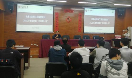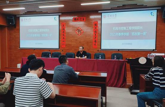 2021年4月9日中午12:30,我院院长伍晓宇教授在致信楼S630讲授2021年春季学期思政第一课并召开实习就业动员大会,学院党委副书记邓琳老师主持,学院副院长娄燕教授、辅导员、学院大三和大四学生代表等120多人参加。