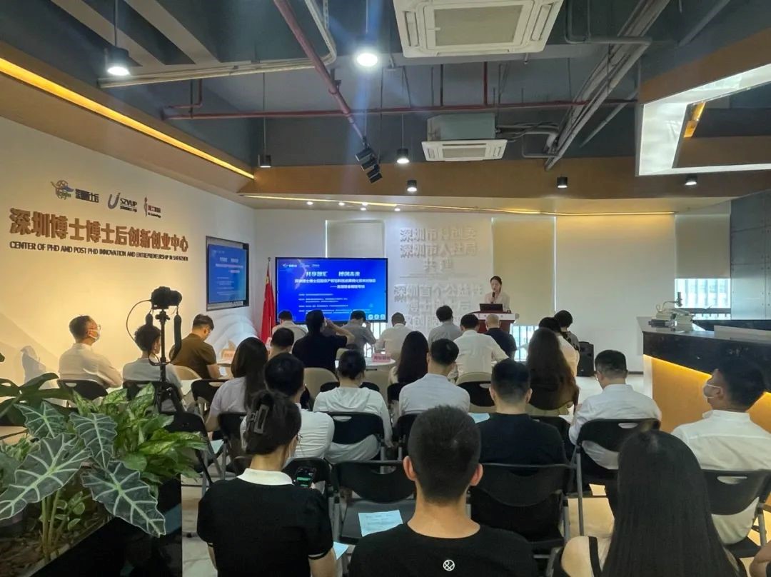 北京大学深圳研究院副研究员、博士后导师胡国庆,深圳大学机电与控制工程学院副院长潘剑飞,深圳大学物理与光电工程学院特聘教授廖常锐,深圳大学机电与控制工程学院助理教授鲁艳军、深圳市深圳大学概念验证中心主任魏兴华,中信银行海湾支行分管行长刘惠芝,博士科技副总裁、博士创新(深圳)科技服务有限公司总经理张雄建等出席活动。活动邀请了力合天使、腾股创投、国宏嘉信、三纳资本、晨晖资本、赛伯乐、青谷投资等10余家投资机构来到现场,共同为优质项目赋能。