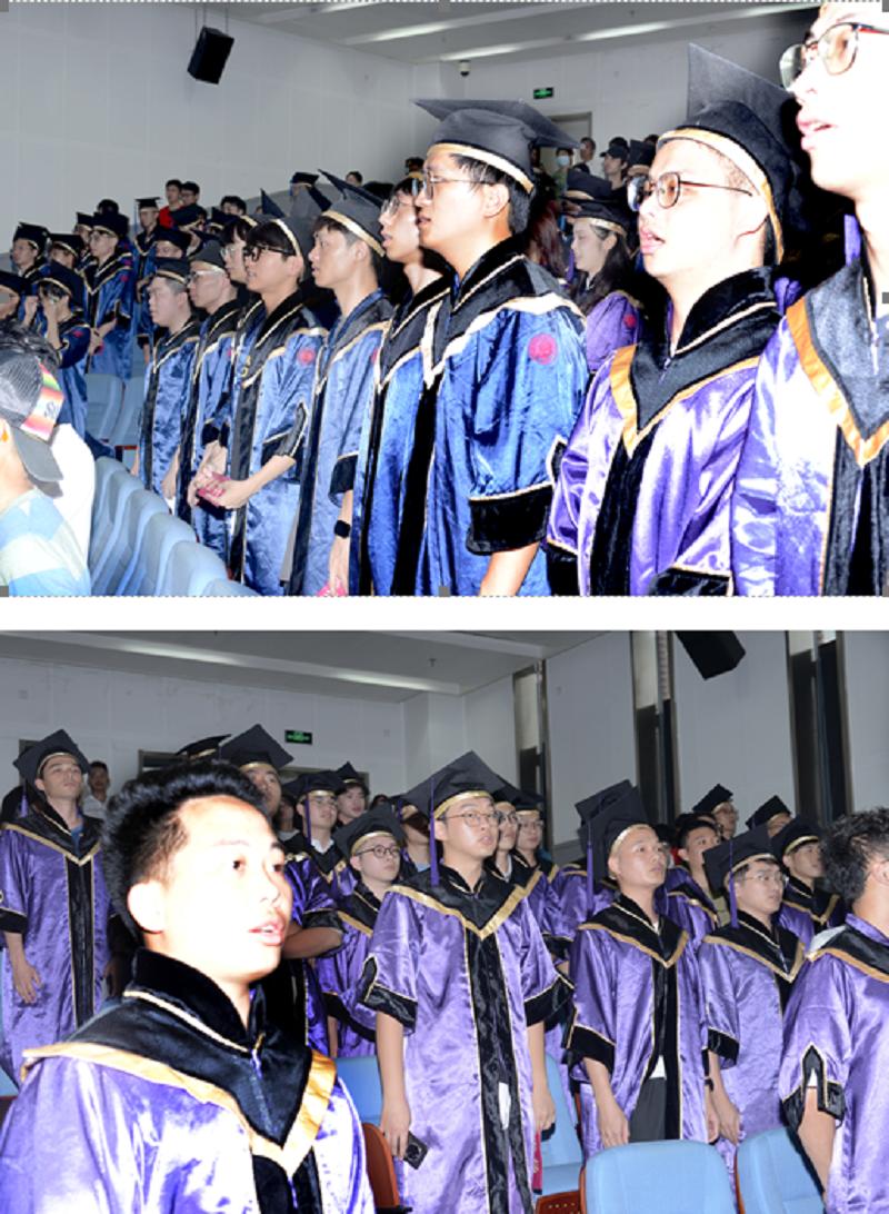 本次典礼由机电与控制工程学院党委副书记邓琳老师主持。主持人介绍参会的嘉宾、领导和老师之后,毕业典礼在雄壮激昂的国歌声中正式拉开帷幕。全体师生齐唱国歌、行注目礼,共同表达对伟大祖国的深切祝福和对母校的深厚感情。