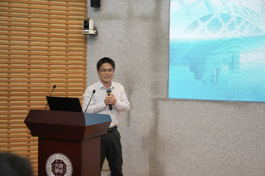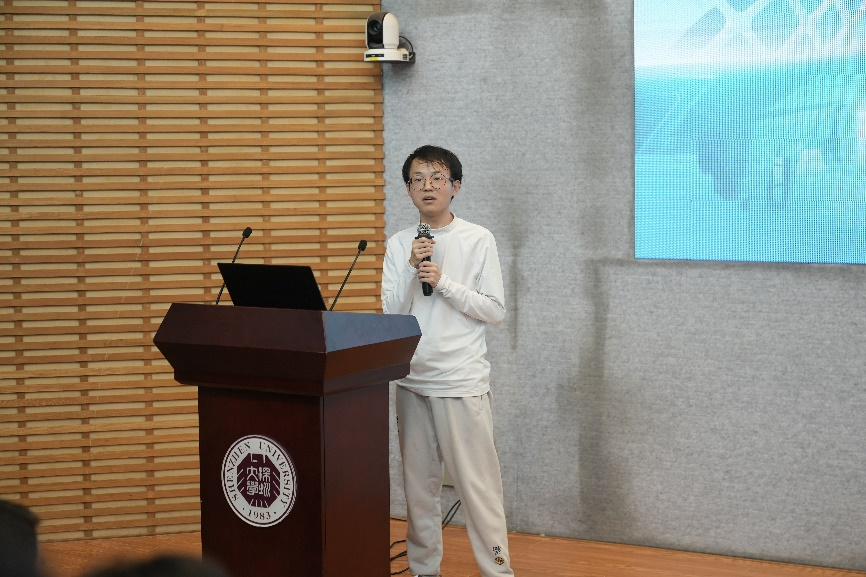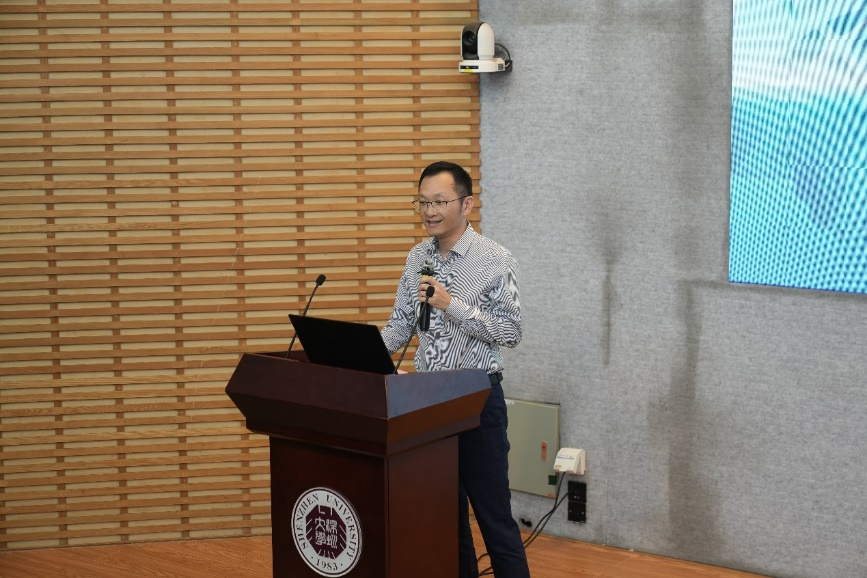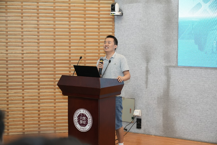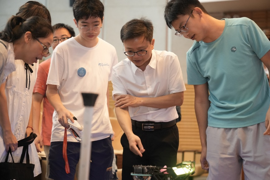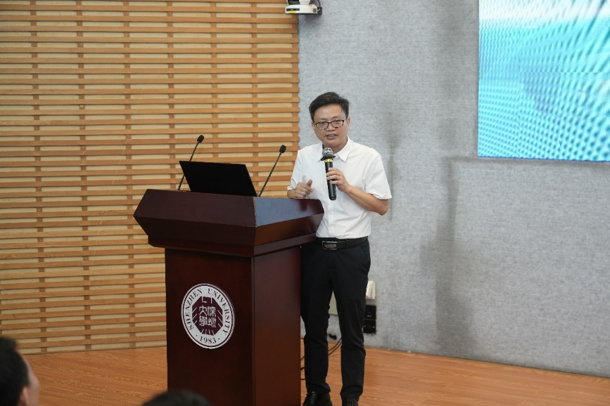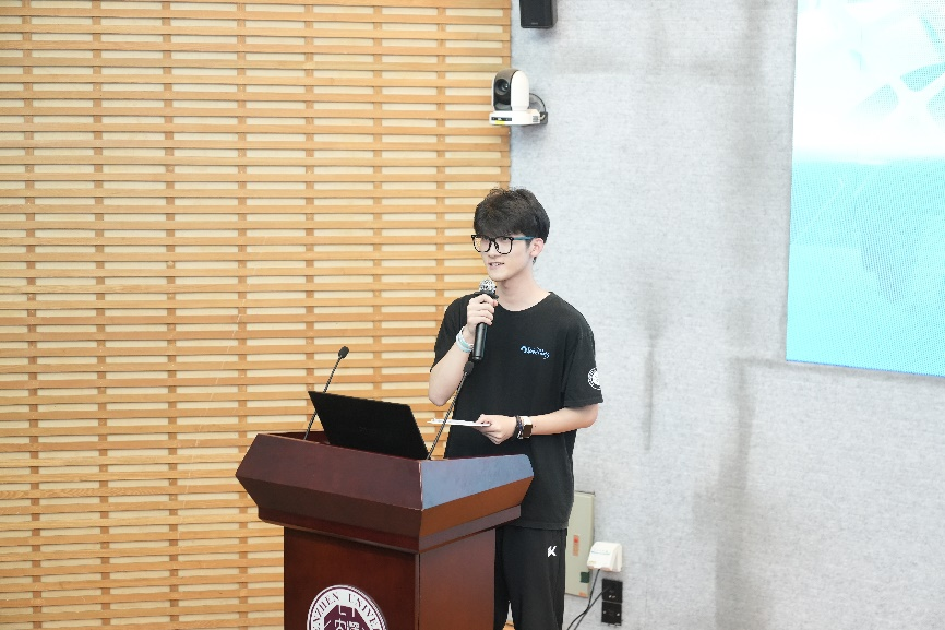 随后,电子与信息工程学院执行院长黄磊教授也发表了讲话,他对 RobotPilots 战队的成员表示感谢。他说,组成 RobotPilots 战队的同学大多数来自机电与控制工程学院和电子与信息工程学院,是一支名副其实的跨学科团队,战队充分利用了两学院的资源和优势,共同攻克了许多技术难题,展现了团结协作和创新求解的精神。同时,他也希望战队能够继续保持这种锐意创新、团结进取的精神,成为深圳大学跨学科交流与合作的一面亮眼旗帜。
