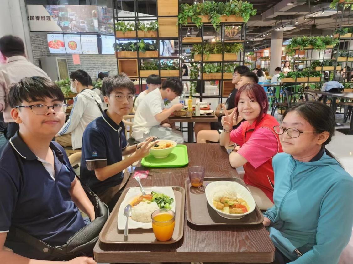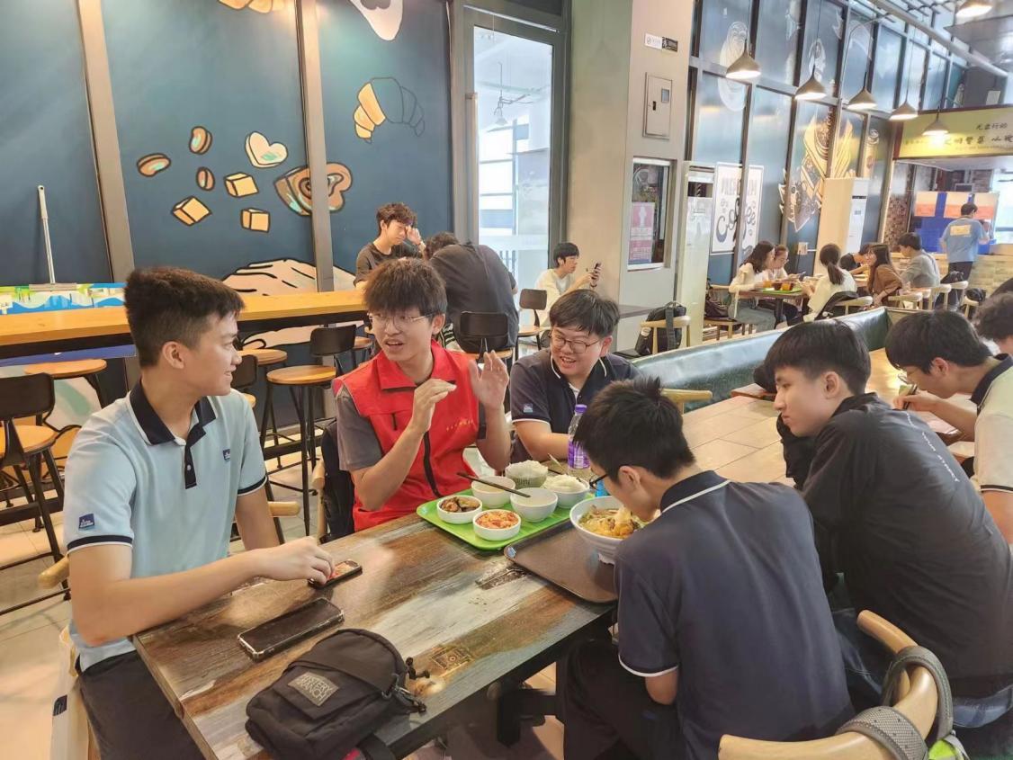 午休时间,香港师生与机电与控制工程学院师生一起在南区学生食堂用餐。香港师生品尝了深圳大学食堂的美食,并与学院师生热烈交流两地生活、校园活动与文化等话题,香港师生中也有外国学生,两校师生不仅开阔了视野,还收获了国际情谊。午休结束后,香港来访师生团队在深圳大学粤海南校区致远门合影留念。