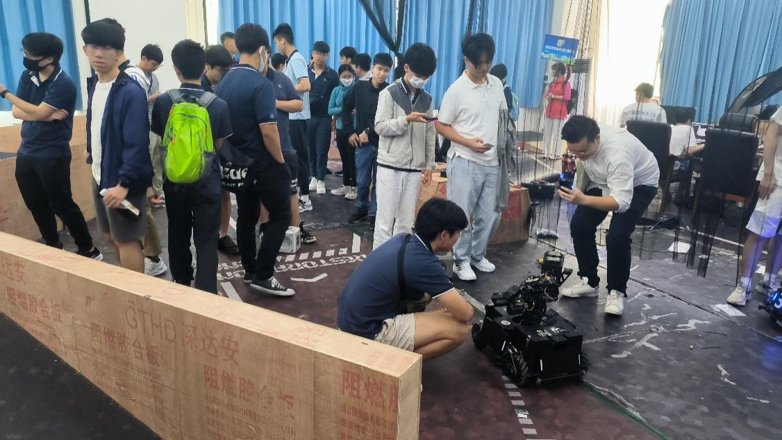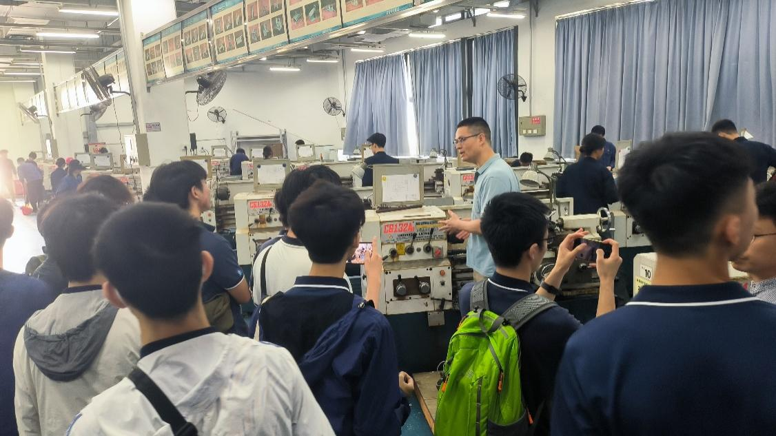 机电与控制工程学院的 Robot Pilots 俱乐部负责人李漓老师向来访师生介绍了 Robot Pilots 战队在 Robot Master 全国机甲大师超级对抗赛的丰硕成果,指引访问师生参观实验室并近距离体验各种机器人的功能与调试,香港师生表现出浓厚兴趣与热情。随后,来访师生团队参观了机电与控制工程学院的工程训练中心与先进制造实训室,彭芳锡老师向访问师生介绍了实验室概况并展示了实验课程金工实习及部分设备操作程序。