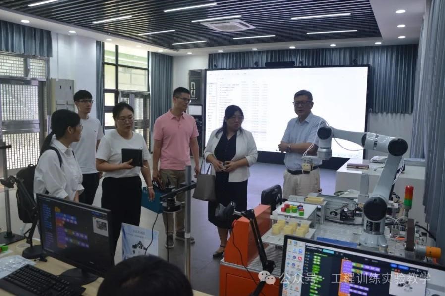 6日上午,广东工业大学实验教学部副主任梁祖红、工程训练中心主任张亚利、邓海祥老师等陪同参观了智能制造、工业机器人、激光、电加工等实训区域,并热情细致地介绍了广工工训中心的建设规模、资源环境、教学运行以及学生学科竞赛作品等情况。