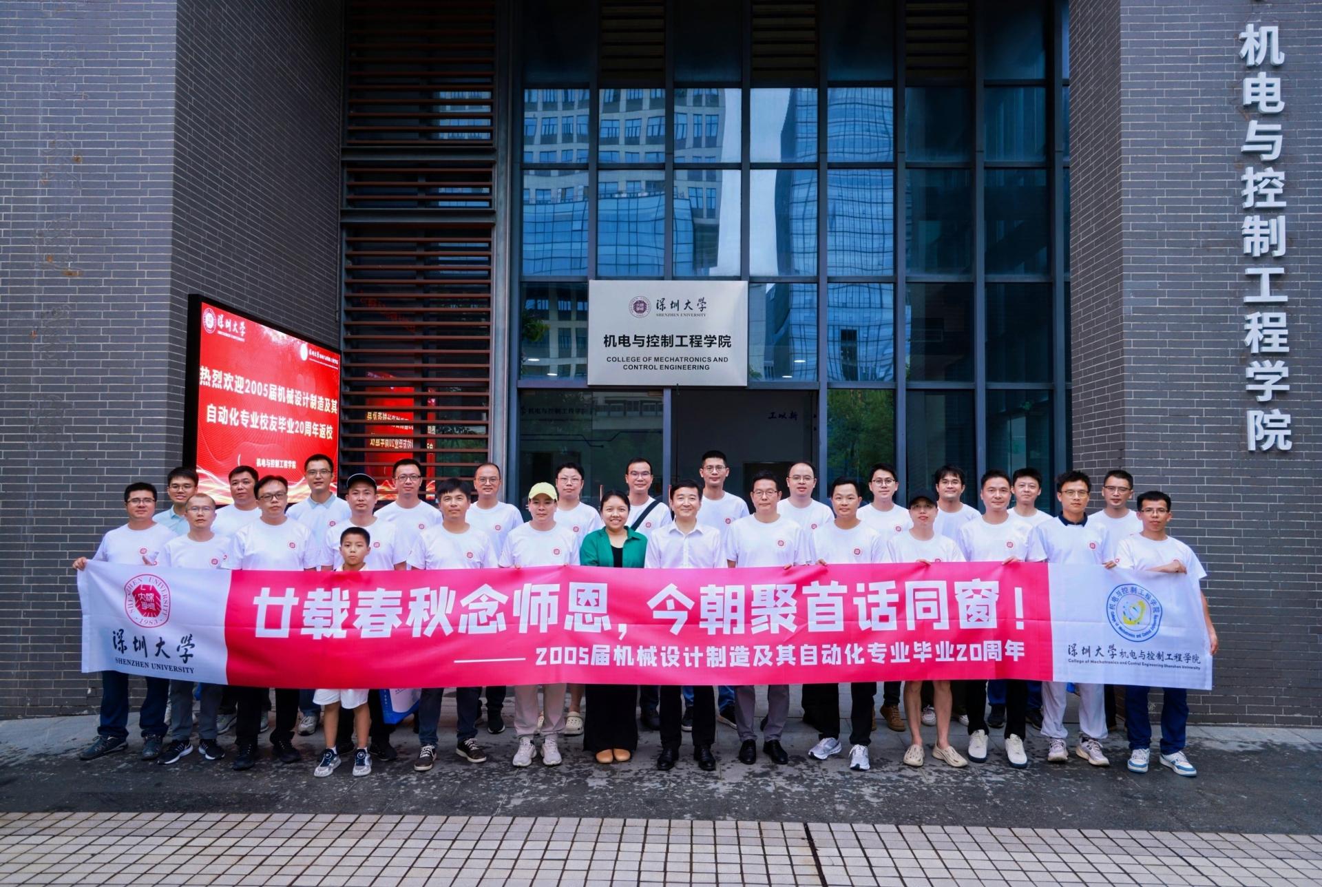 2025年6月14日,鹏城夏雨刚至,荔园草木葱茏。深大校园内,一场跨越二十载的青春之约如期而至——2005届机械设计制造及其自动化专业同学在班级召集人黎超强、杨声畅、陈圣仁等同学的召集下重返母校,以“廿载春秋念师恩,今朝聚首话同窗”为名,在时光长河中打捞记忆的碎片,于岁月沉淀中续写同窗的深情。