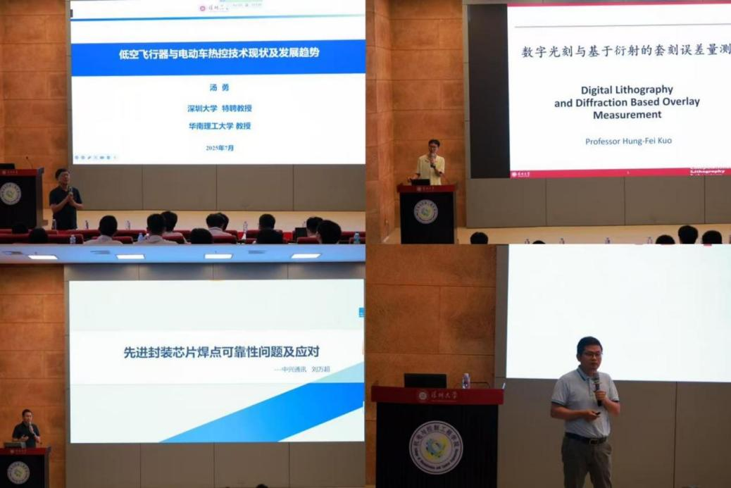 7月12日上午,吴宗泽院长、郑纯书记、龚峰副院长及学位点负责人赵泽佳等老师参加开营仪式,吴宗泽院长详细讲述了深圳大学的发展历程、组织构架、科研实力以及学院的师资规模和各实验室的组成情况。下午的学术讲座中,汤勇教授的“低空飞行器与电动车热控技术现状及发展趋势”、郭鸿飞教授的“数字光刻与套刻误差量测”、马将教授的“玻璃态物质及其特种加工”和刘万超高级工程师的“先进封装芯片焊点可靠性问题及应对”都激发了学员们的浓厚兴趣。