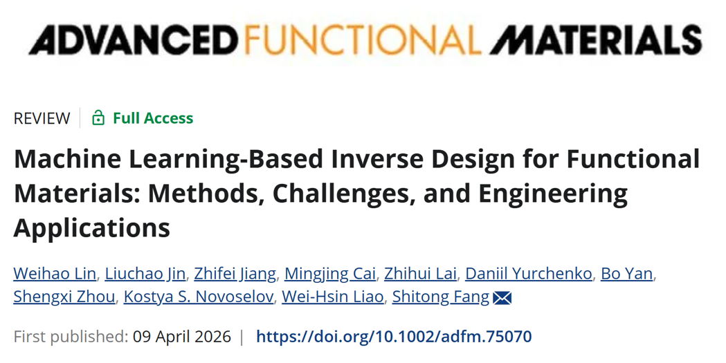 近日,深圳大学机电与控制工程学院方仕童副教授团队联合香港中文大学、新加坡国立大学、英国南安普敦大学、西北工业大学、西安电子科技大学、浙江科技大学的研究团队,在国际材料顶刊《Advanced Functional Materials》(IF=19.0)发表重磅综述论文,系统性综述了机器学习驱动功能材料逆向设计核心方法与工程应用。