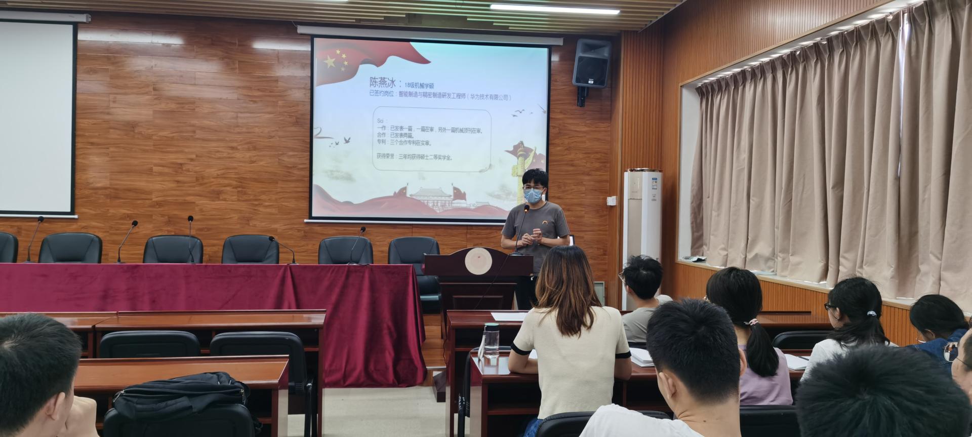 第三位是18级机械学硕的陈燕冰,签约岗位是华为技术有限公司的智能制造与精密制造研发工程师。该生研究生期间发表论文和专利多篇,连续三年获学业奖学金。他分享了机械专业找工作的方向,以及自己求职过程中总结出的经验教训,包括自己的学习方法和找工作前所做的准备。对于同学的提问,也进行了耐心和细致的解答。