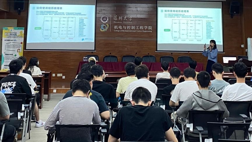 2023年3月25日上午,机电与控制工程学院在致信楼S630室开展了关于就业选择和简历撰写的就业辅导活动。本次讲座由刺猬求职项目运营负责人张琳老师主讲(曾在世界五百强及硅谷独角兽公司工作)。学院2019级和2020级70余名本科生参加了活动。