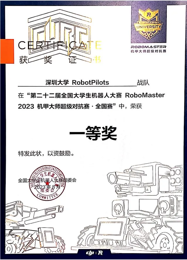 2023年8月9日-13日,第二十二届全国大学生机器人大赛RoboMaster 2023机甲大师超级对抗赛·全国赛在华润深圳湾体育中心“春茧”体育馆激烈展开。经过数天的激烈角逐,深圳大学RobotPilots战队在32支参赛队伍中脱颖而出,以第二名的成绩从小组赛中晋级。在十六进八淘汰赛不敌广东工业大学落入败者组后,先后击败东北林农业大学和南方科技大学,顺利晋级八强。在8月12日八进四淘汰赛中,1:2不敌华南农业大学,最终获得全国赛八强。