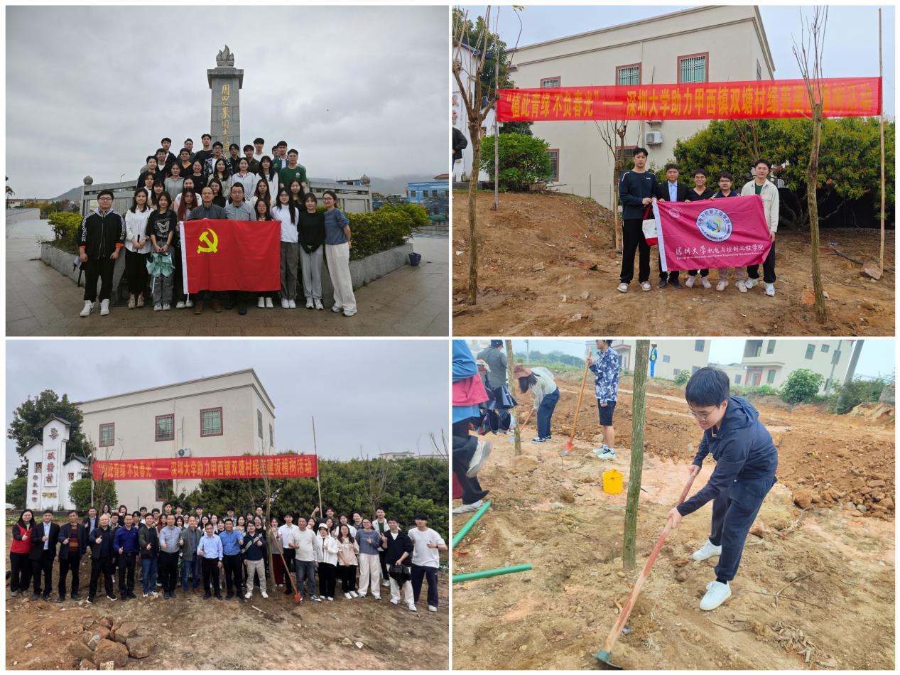 午后,植树活动在甲西镇双塘村准时开始,师生党员们团结协作、干劲十足,挥锹铲土、扶正树苗、分层培土、提水浇灌,现场热火朝天。一株株树苗在土地中稳稳扎根,黄花槐、黄花风铃木、四季桂等本地适生树种组成的“深圳大学先锋林”作为联结校地劳动实践和党建共建的纽带,不仅为双塘村的人居环境增添了盎然生机,更书写了高校力量服务乡村绿化的务实篇章。随后,师生党员一行观看了陆丰禁毒纪录片,还走街串巷、亲身体验当地多彩的民俗文化,进一步了解陆丰民情,延展思政教学“半径”。