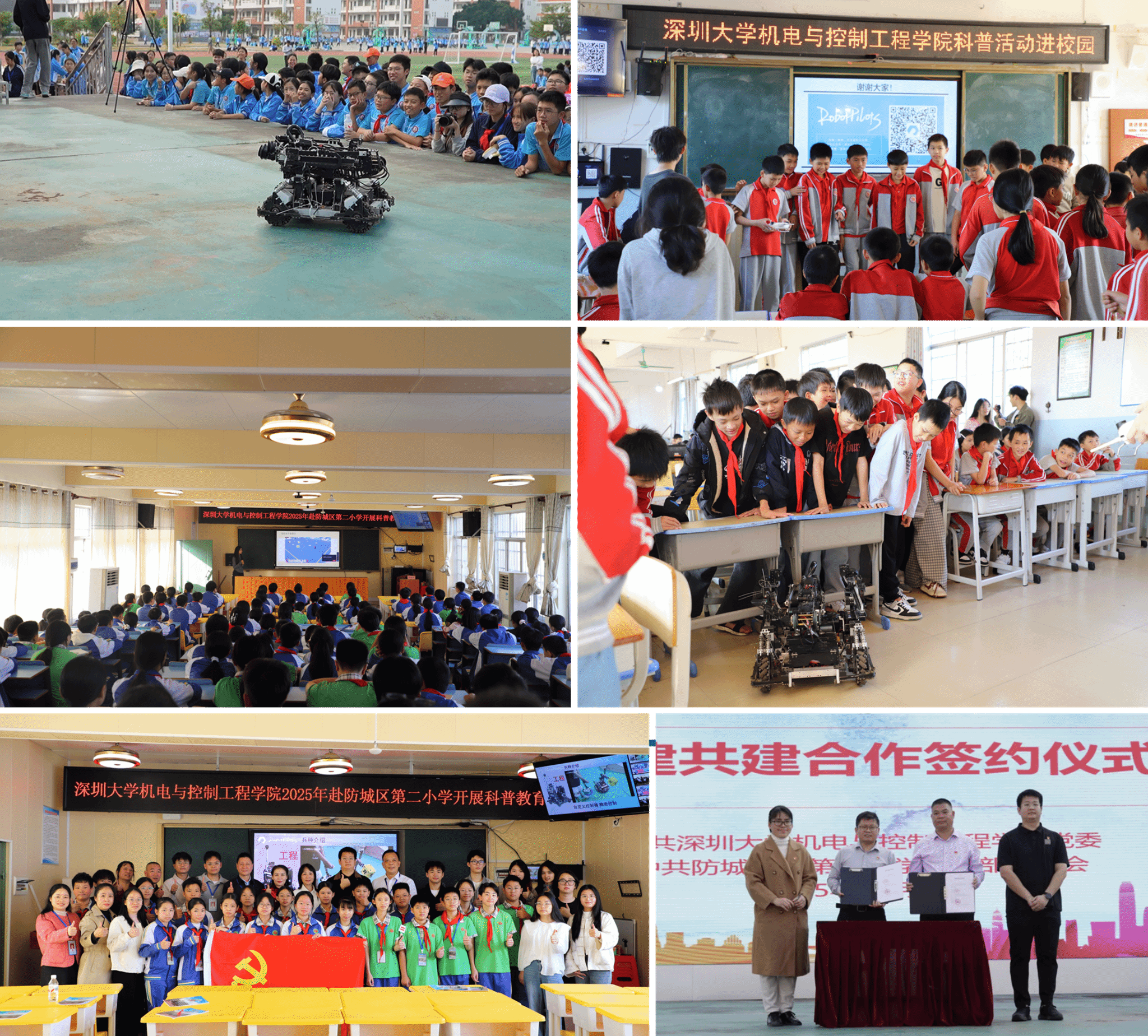 如何将单次的科普活动转化为长效育人机制,是学院党委对于打造党建金牌、强化科普实效的关键思考。唯有在常态长效上下功夫,方能行稳致远。借此次科普,学院党委与防城港市第三中学签订党建共建协议,建立“党建+科普”长效帮扶机制,在组织共建、科创共育、资源共享、活动共联和品牌共创等方面开展深度合作,推动高校智力资源与边疆教育需求精准对接。协议签署后,防城港市第三中学卢筱梅书记一行于2025年12月17日回访深圳大学机电与控制工程学院,实地参观科研实验室与学生俱乐部,交流省级党建工作样板支部的科创社团党支部的建设经验,进一步加深双方的合作互信,为持续深化校地合作奠定基础。