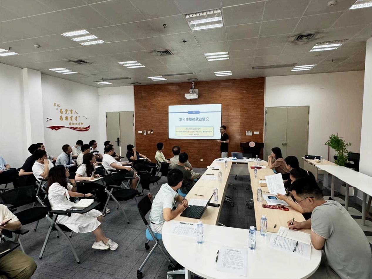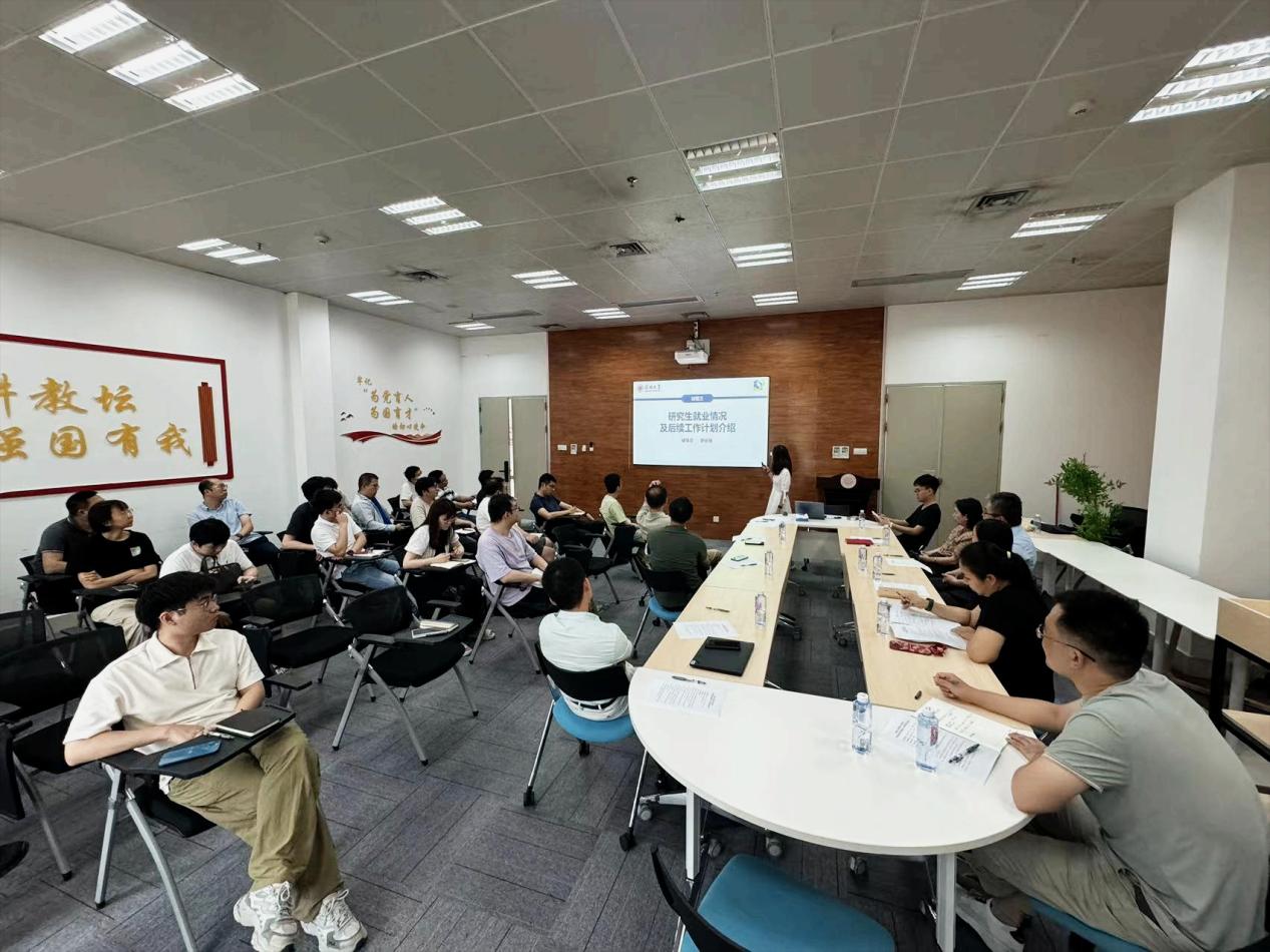 廖丽丽老师向各位老师介绍了目前2024届研究生的就业情况,并与去年同期的就业落实相关数据对比,分析了今年就业大环境的变化,并汇报了未落实去向的研究生摸底情况。接下来,学院将继续通过多渠道多手段帮助未落实去向的研究生毕业生尽早明确目标。
