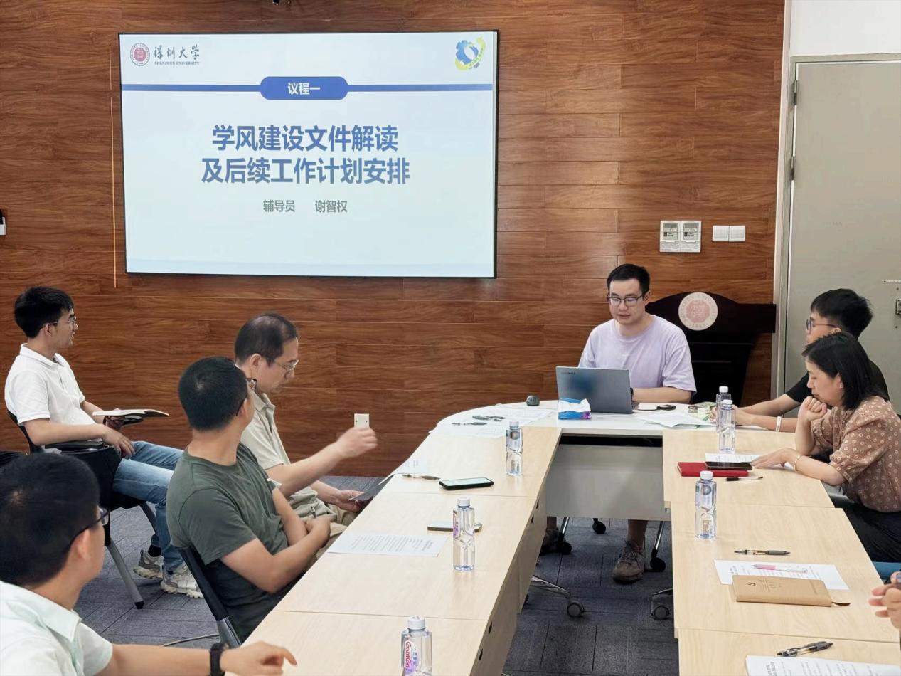 会议上,辅导员谢智权向各位老师介绍并解读学风建设相关文件,并请各位系主任、专业负责人、班主任老师动员全体老师,在日常工作中不断提升师风教风、确保学术诚信、加强班级建设,以身作则营造学院良好的教学和学习氛围;同时请专任教师重视课堂考勤和课堂管理,掌握学生学情,与教务及辅导员老师形成合力帮扶学业落后学生。