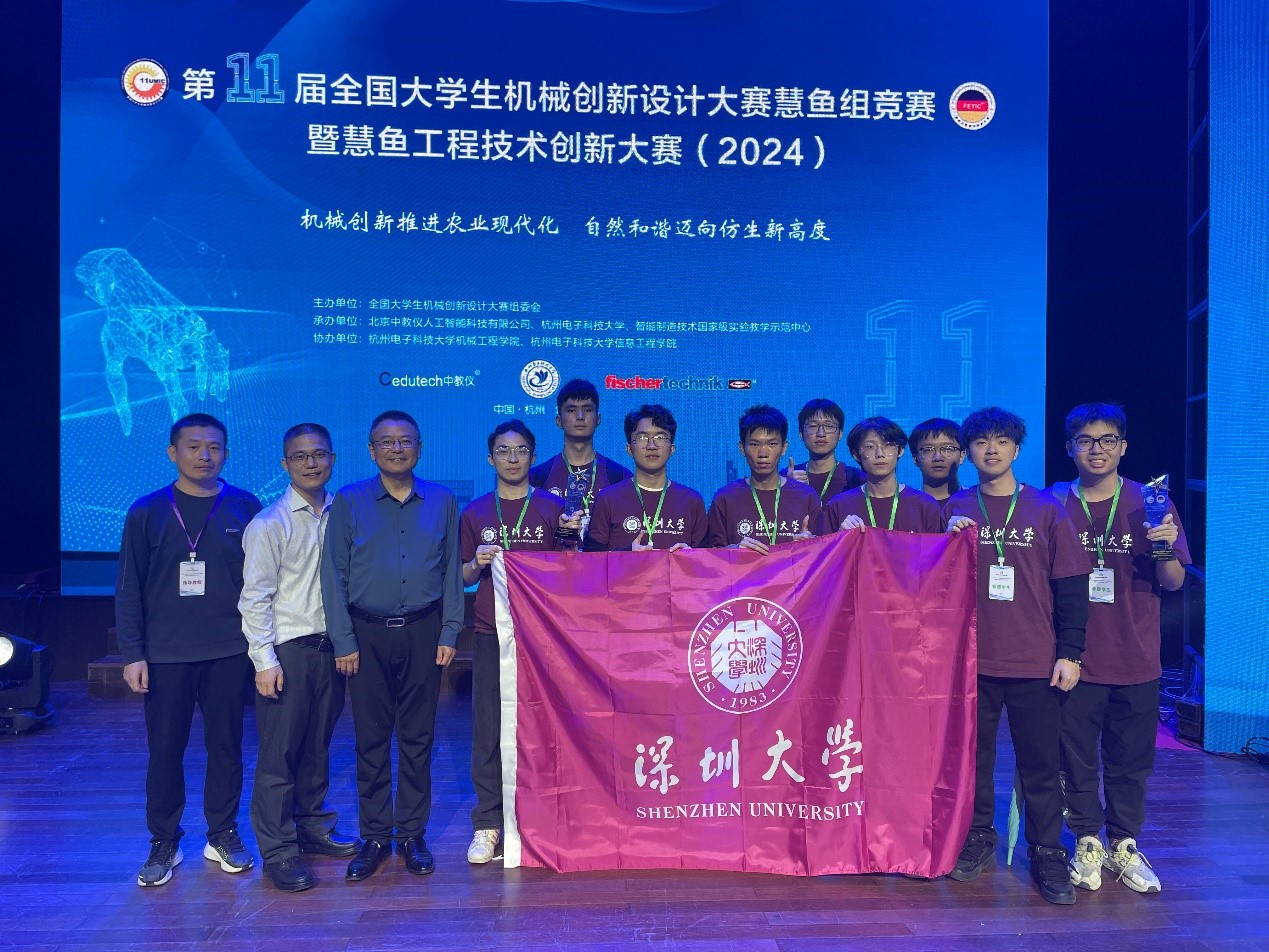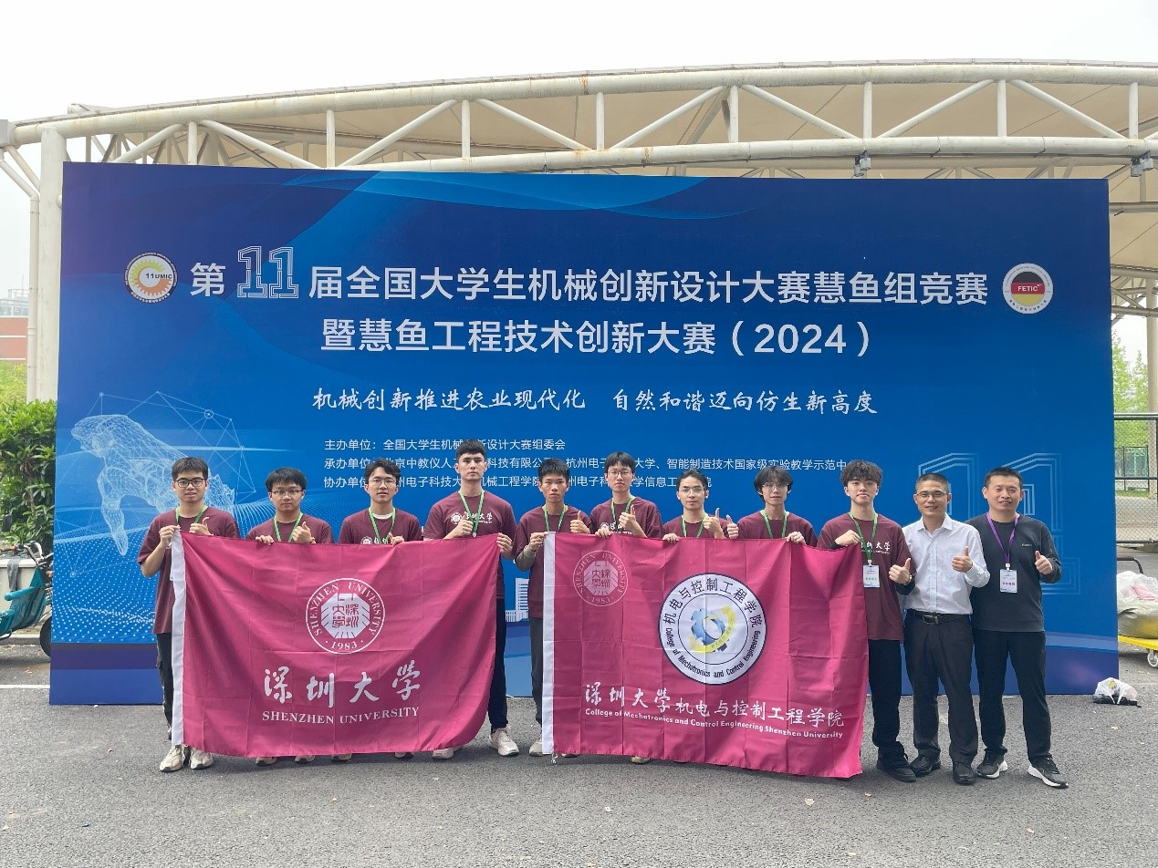 4月19日至21日,第十一届全国大学生机械创新设计大赛慧鱼组竞赛暨慧鱼工程技术创新大赛 (2024) 全国总决赛在杭州电子科技大学成功举行,代表深圳大学参赛的机电与控制工程学院本科生队伍,在黄桂坚和汪朋飞两位老师的指导下,经过实物作品现场展示和答辩两轮激烈角逐,最终取得优异成绩,荣获两项全国一等奖!