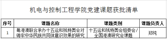 “粤港澳联合承办十五运和残特奥会对铸牢中华民族共同体意识效果的研究” 课题成功申报十五运和残特奥会组委会/全国港澳研究会课题。该课题紧密结合国家战略与社会热点,是学院党委指导省级样板支部建设展开的理论研究探索。
