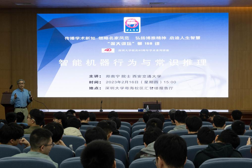会后,郑南宁院士受邀在汇智楼报告厅,为我校师生带来了校庆40周年学术系列讲座 深大讲坛第一百五十八讲:智能机器行为与常识推理。