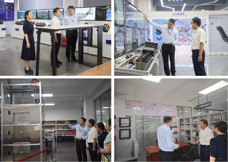 王月兴一行在何志明陪同下来到参观了海浦蒙特研发、生产、测试中心,了解自主研制的电梯控制器、电梯控制柜、电梯配件及变频驱动器、选配件、伺服驱动器与控制器等产品,感受到海浦蒙特作为电梯控制系统专家和工业自动化解决供应商的科技创新实力;参观展厅,深入了解企业运营理念、主营业务和孵化发展历程,领略海浦蒙特“根植中国,立足全球”的创新发展理念;调研党建阵地建设,围绕党员教育服务管理、党员风采展示、党建促业务等进行深入交流。