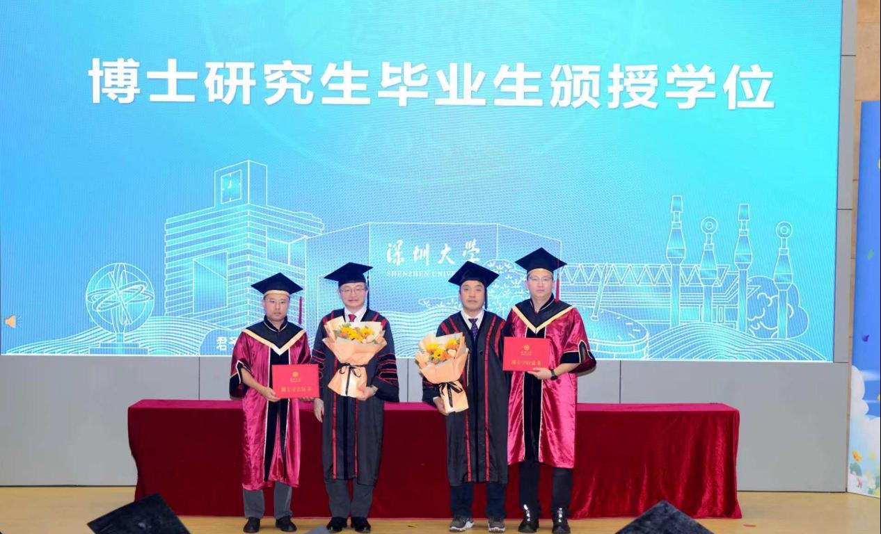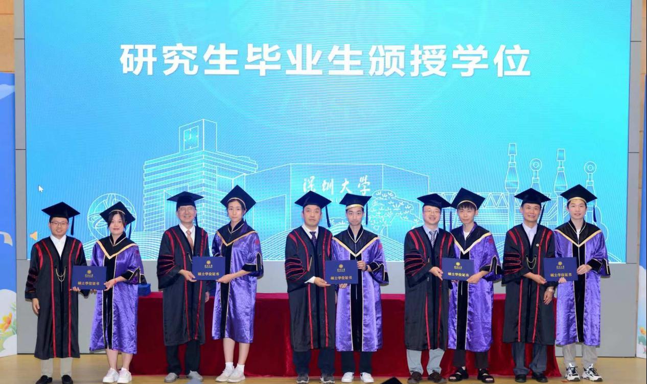 最后进行学位授予仪式,龚峰副院长宣读深圳大学关于授予学历教育博士学位的决定、深圳大学关于授予学历教育硕士学位的决定。娄燕副院长宣读深圳大学关于授予普通高等教育本科毕业生学士学位的决定。吴宗泽教授、龚峰教授、娄燕教授、钟小品副教授、马将教授、王序进教授、曲行达教授、汤勇教授、曹广忠教授、王华权老师、程蓉教授、张国庆副教授为博士、硕士和学士拨穗正冠,颁发学位证书。